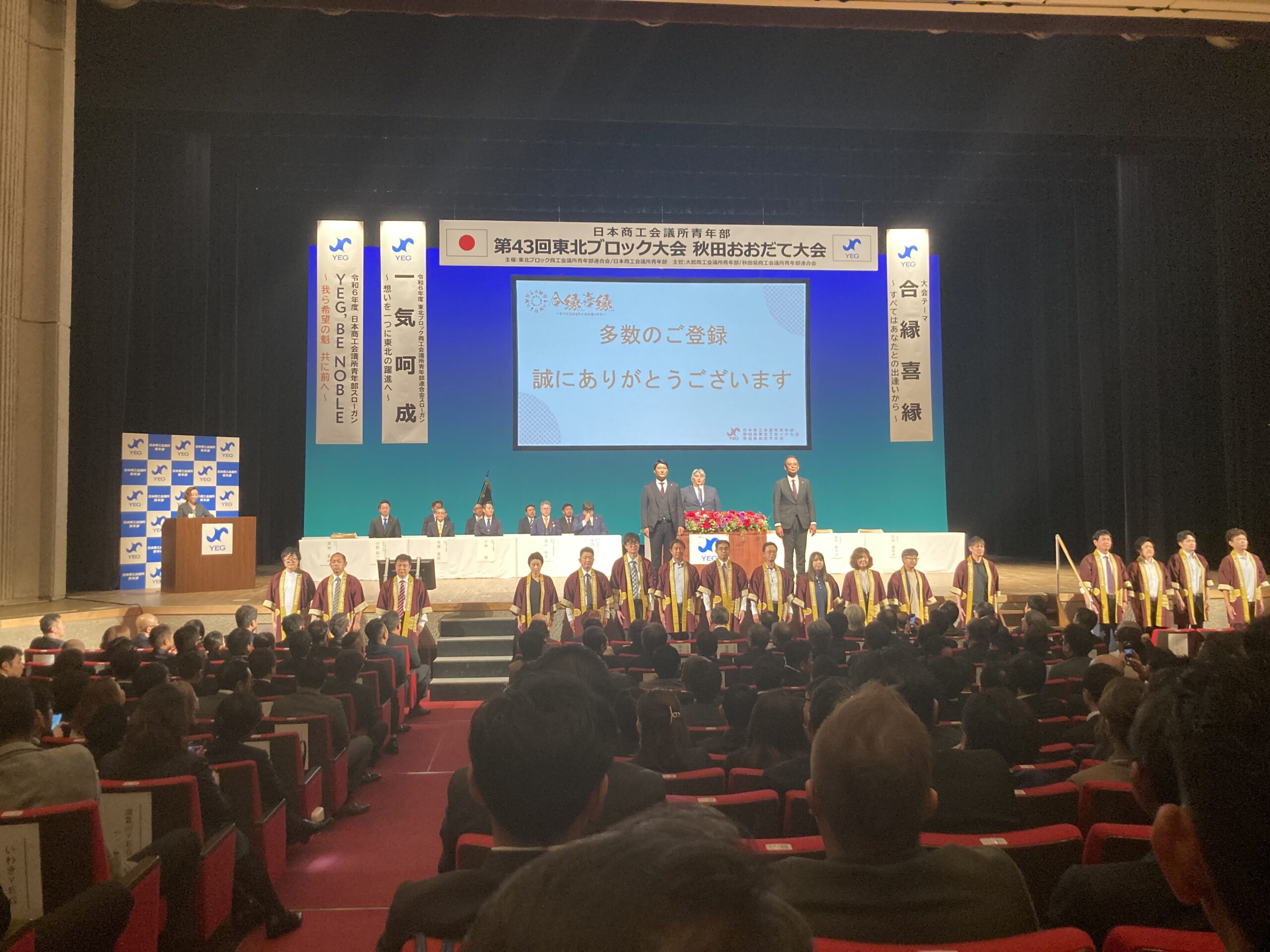 日本各地のYEGが一動に会する大会が毎年開催されます。YEGメンバーは全国大会に参加することにより、新しい出会い、日本各地のメンバーと交流と研鑽を通じてたくさんの事を学びます。